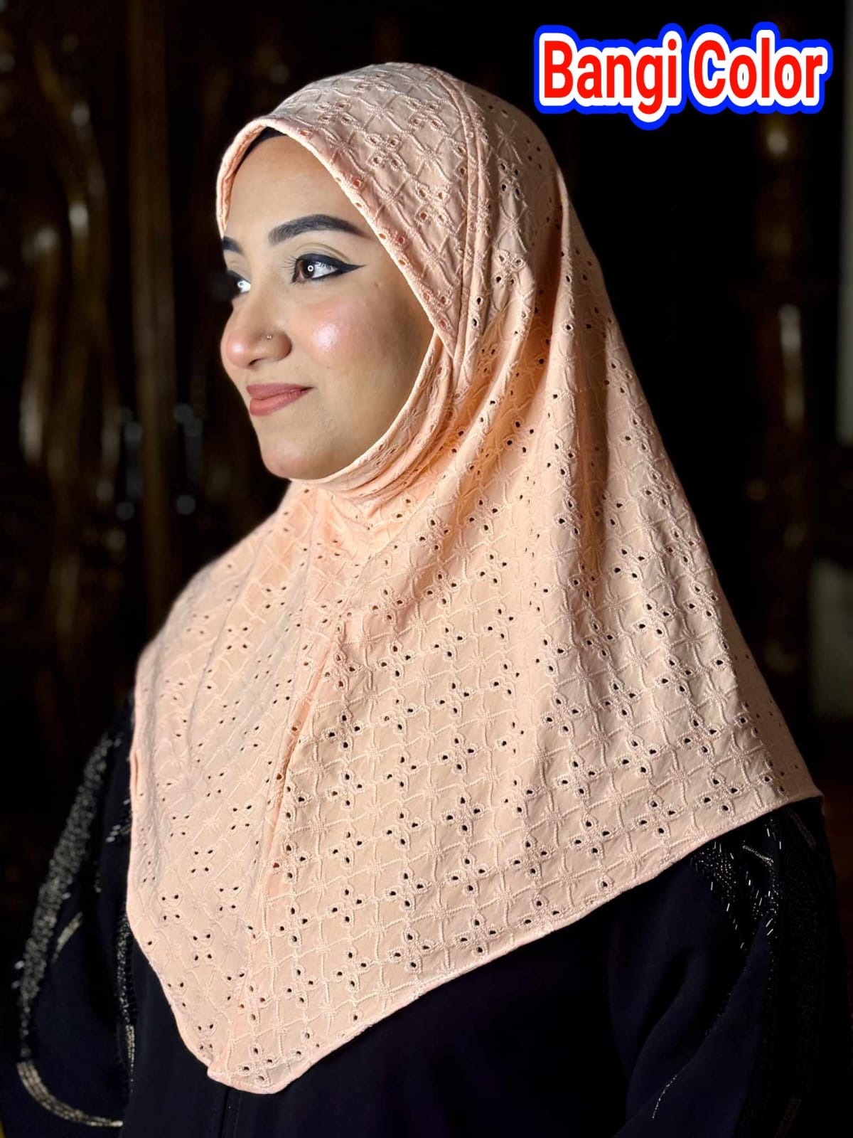 Chikan Embroidery Instant Hijab for Women Bangi Color