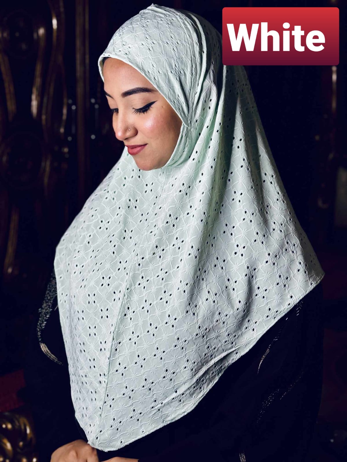 Chikan Embroidery Instant Hijab for Women White